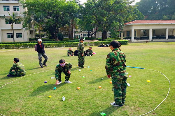 這個(gè)項(xiàng)目是模擬戰(zhàn)場(chǎng),三人一組,分別扮演:司令(不能說(shuō)話、面朝戰(zhàn)場(chǎng))、參謀長(zhǎng)(背對(duì)戰(zhàn)場(chǎng))、士兵(蒙上眼罩,不能說(shuō)話)。